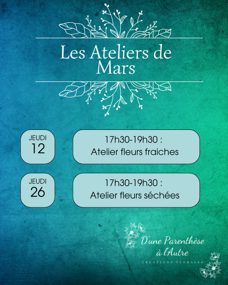 Installé dans l'atelier Espace Eclair dans le quartier St Agne de Toulouse, D'une Parenthèse à l'Autre est un atelier de création florale qui vous propose de sublimer vos évènements privés (mariage, baptême, anniversaire, atelier ...), professionnels (abonnement, décoration vitrine, séminaire, soirée ...) et vous propose aussi, sur commande, des bouquets et autres compositions florales.
