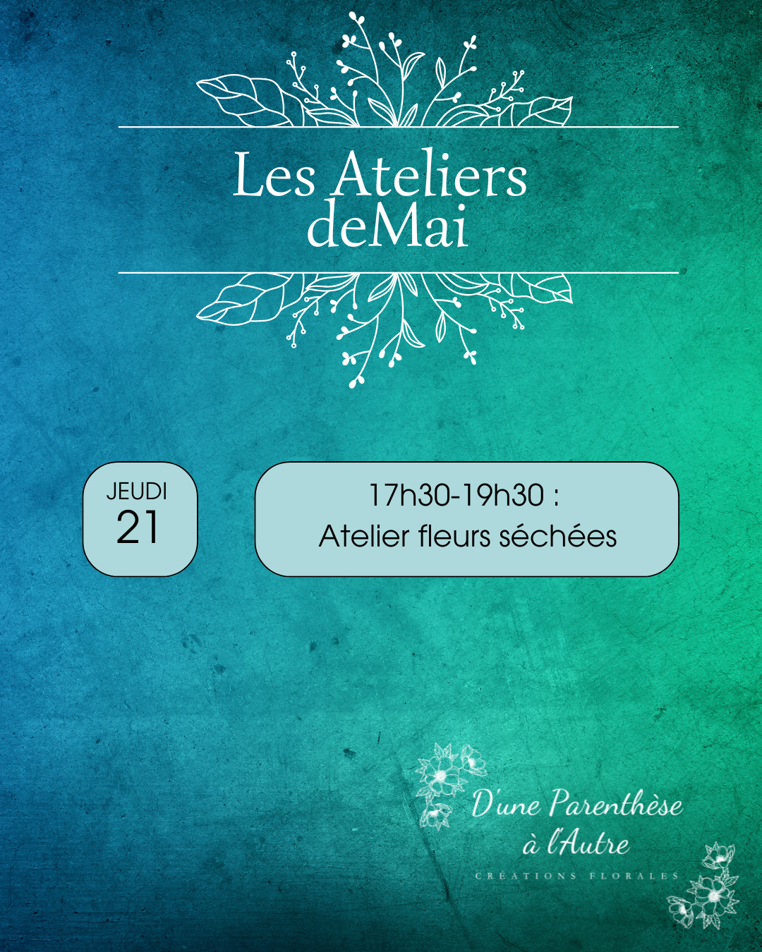 Fleurs fraîches et séchées, l'atelier réalise vos souhaits et s'adapte à votre univers au fil de ses différentes prestations.